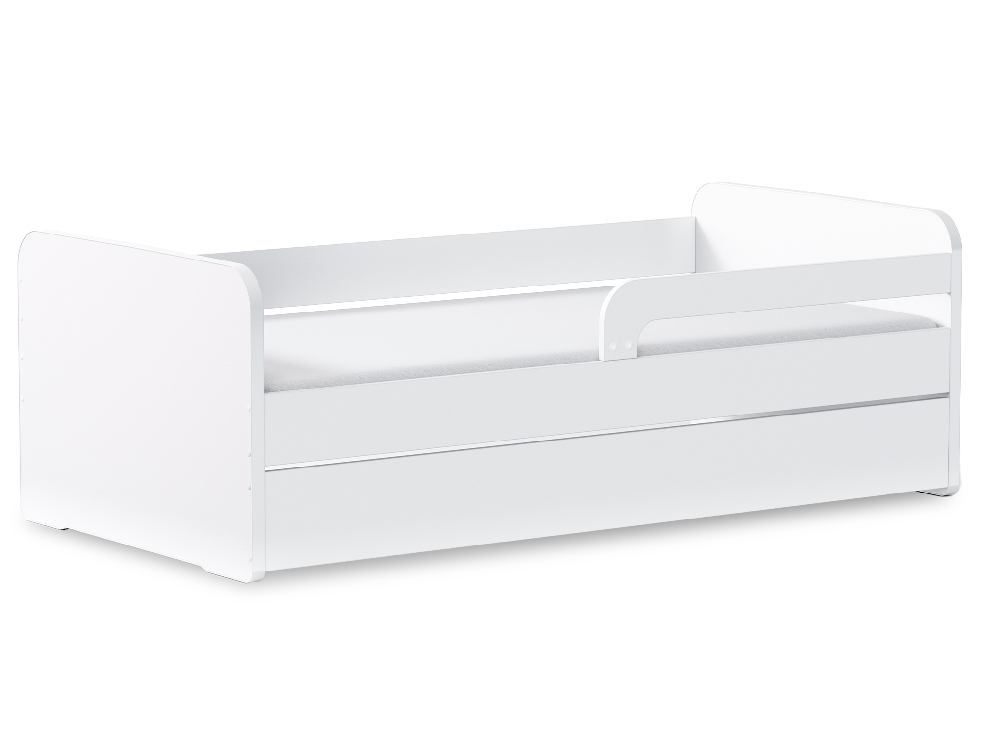 Das Kinderbett Duuli ist ein modernes Möbelstück mit einem universellen Design, das perfekt in jedes Kinderzimmer passt. Der robuste Rahmen in klassischem Weiß verleiht Leichtigkeit und Eleganz und unterstreicht seinen zeitlosen Charakter. Das Bett ist mit einer Sicherheitsbarriere ausgestattet, die während des Schlafens für maximale Sicherheit sorgt und das Kind vor einem versehentlichen Herausfallen schützt. Erhältlich in zwei Varianten – mit oder ohne Matratze – ermöglicht es die Anpassung an individuelle Bedürfnisse. Das Fehlen eines Bettkasten macht die Konstruktion leicht, einfach und ideal für einen minimalistischen, modernen Stil. Das Duuli-Bett vereint Ästhetik, Funktionalität und Sicherheit und ist die perfekte Lösung für den komfortablen Schlaf Ihres Kindes