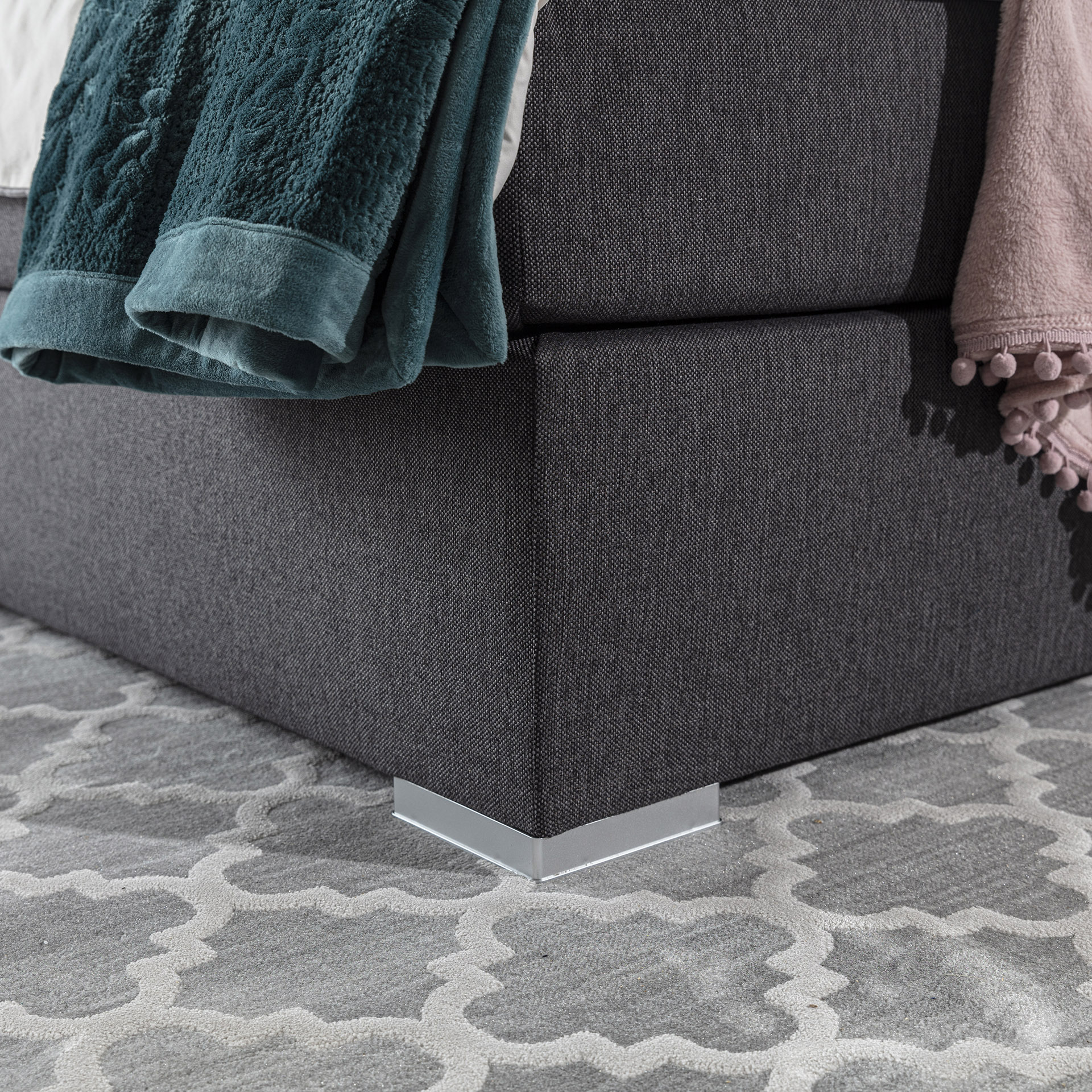 Inez ist ein geräumiges, komfortables und stilvolles kontinentales Boxspringbett, das sich durch sein zartes Design und sein ungewöhnliches Muster auszeichnet. Das Aussehen von Inez wird unter anderem durch die hohe, mit Steppungen und Nähten verzierte Kopfstütze und die eleganten Metallbeine beeinflusst. Geräumiges Bett mit einer Liegefläche: 140/ 160/ 180 x 200 cm ist ein perfekter Ort zum Entspannen zu jeder Tages- und Nachtzeit. Zu den weiteren Vorteilen dieses Modells gehört eine 20 cm hohe Bonellmatratze, die mit zusätzlichen Schichten – oben und unten – aus weichem und flexiblem T25-Schaum und einer 4 cm dicken T21-Schaumauflage ausgestattet ist. Eine solche Kombination garantiert Freiheit und maximale Entspannung.Inez ist ein moderner, klassischer Stil, der den modernen Vorstellungen von der Inneneinrichtung eines einzigartigen Schlafzimmers entspricht.